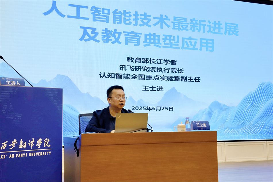 会议第二环节,由王士进作《人工智能技术最新进展及教育典型应用》主题报告。报告中,他深入阐释教育与人工智能双向赋能的深刻内涵,系统回顾通用人工智能技术历经四次浪潮的发展历程,详细介绍星火大模型的最新研究成果,以及其在基础教育、高等教育和职业教育领域的创新探索与实践应用,为陕西民办教育发展提供了极具价值的前沿思路与实践参考。