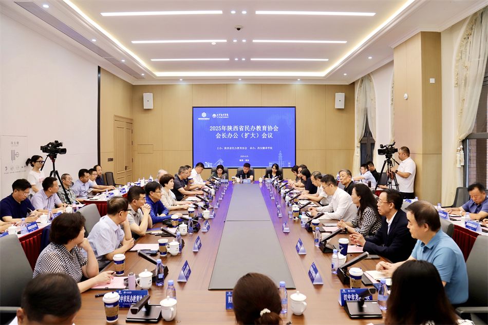 6月25日,2025年陕西省民办教育协会会长办公(扩大)会议在西安翻译学院祖诒国际学术交流中心召开。陕西省民办教育协会会长郝利生,协会秘书长岳沛磊,协会常务理事、监事会成员、各专业委员会成员,部分地市民办教育协会会长等齐聚一堂,共商民办教育发展大计。陕西省民办教育协会副会长、西安翻译学院理事长丁晶出席会议并致欢迎辞。会议特邀科大讯飞研究院执行院长王士进作主题报告,协会秘书长岳沛磊主持会议。